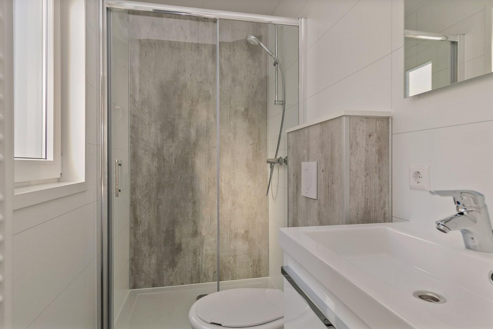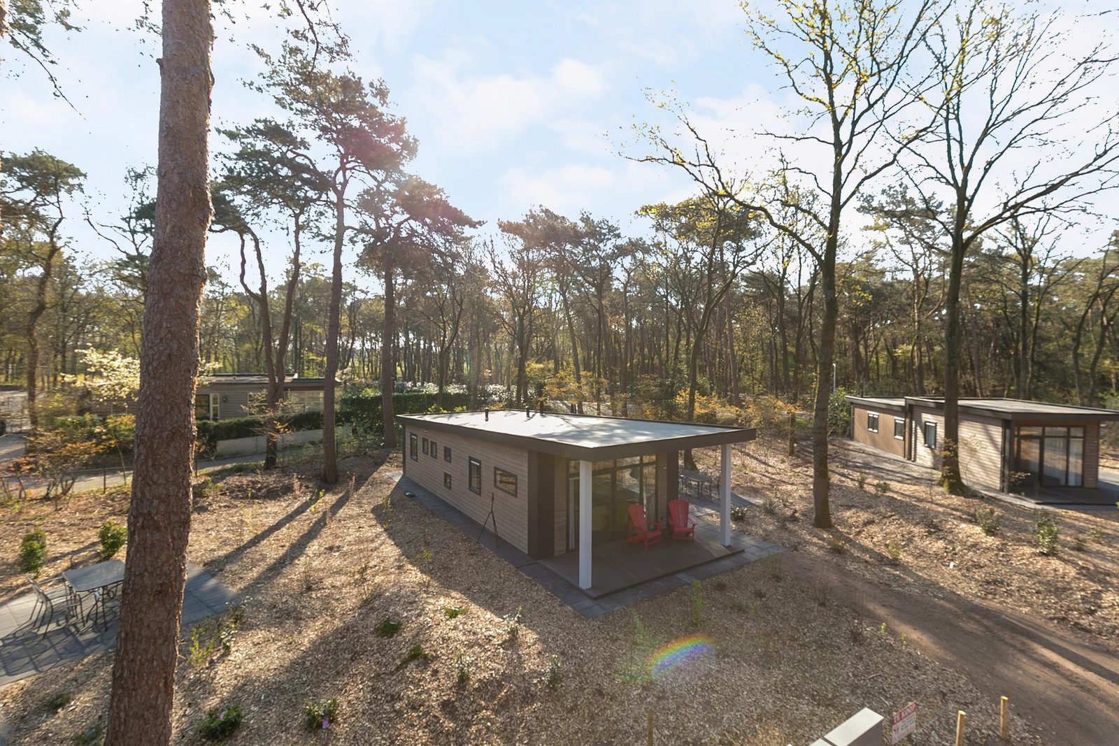 De chalet is afgewerkt met echt hout. Dit is een bewuste keuze. Zodoende kleurt het namelijk mooi met de omgeving mee, prachtig voor in de beboste omgevingen. Van binnen is de chalet helemaal aangekleed. Van mooie fauteuil tot een strakke vloer en van een echte Bruijnzeel keuken tot een badkamer met een douche. Het totaalplaatje is af. Met de grote kozijnen aan de voorzijde is het mogelijk om heerlijk, vanachter het glas, te genieten van de mooie omgeving en het lekkere weer.